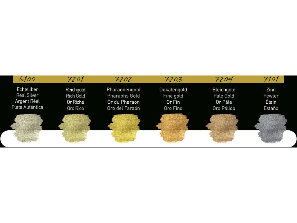 - Obsah: (pravé stříbro – bohaté zlato – faraonské zlato – jemné zlato – bledé zlato – cín).