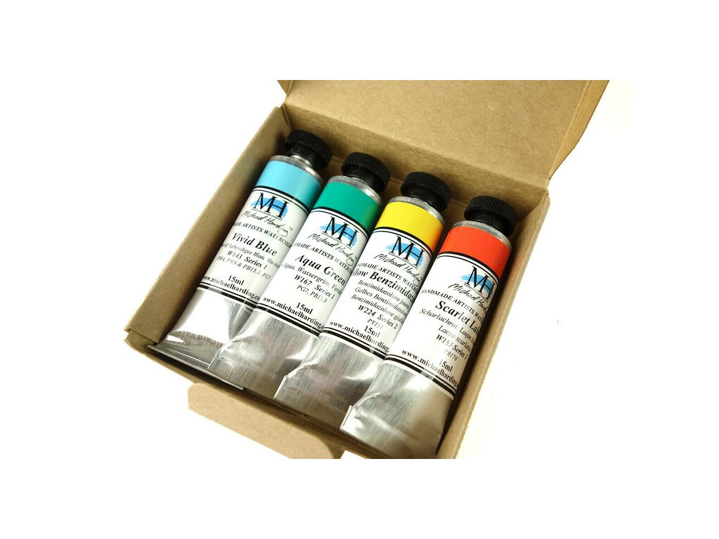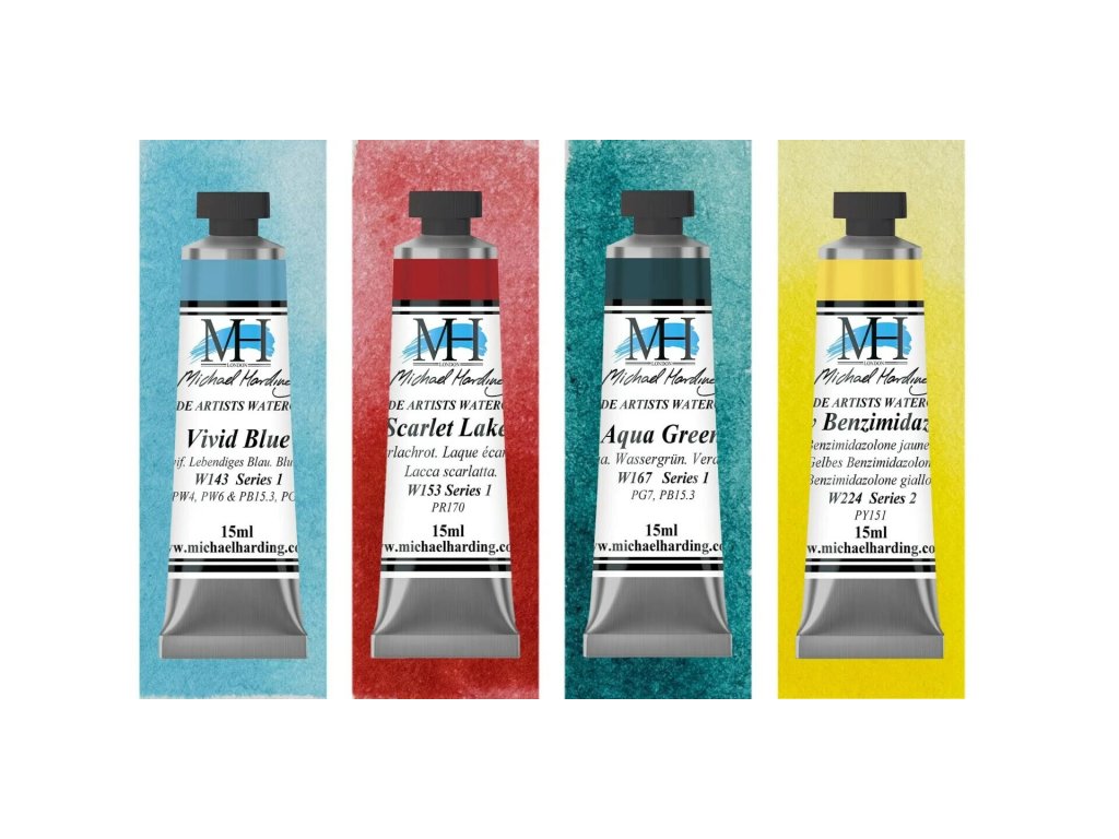 Akvarely Michael Harding jsou vysoce pigmentované barvy. Ty nejkvalitnější pigmenty jsou pojeny kvalitní arabskou gumou a medem. Celá řada obsahuje více než 130 barev, z nichž 92 jsou monopigmenty, což zajišťuje čisté míchání barev a silný kontrast. Zaschlé barvy lze snadno znovu použít a v prázdných nádobkách lze vytvářet a uchovávat oblíbené směsi.