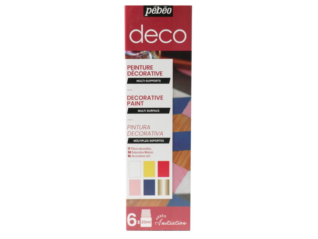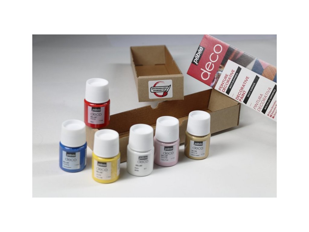 Sada obsahuje 6 lesklých akrylových barev Pebeo Deco.
