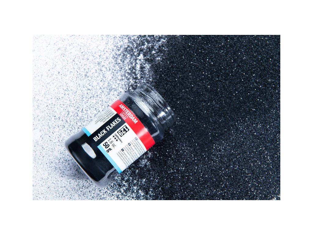 Třpytky naneste na mokrou barvu nebo je vmíchejte do médií, laků nebo transparentních barev.