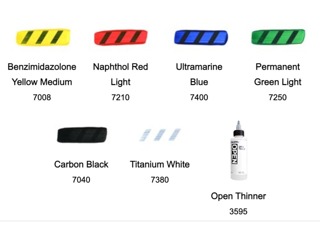 Sada akrylových barev Golden Open - Intro Set, 6 x 22 ml + thinner