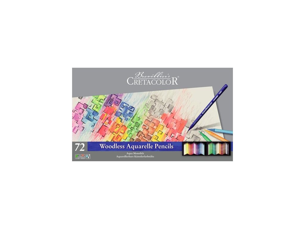 Aqua Monolith se skládá z čisté barvené tuhy potažené tenkou vrstvou laku v barvě odstínu. Sada vyniká svou pestrostí 72 (sedmdesáti dvou) fantastických barevných odstínech. Jemné linie i velké plochy mohou být malovány jednou a tou stejnou pastelkou. Tyto fenomenální barvy jsou dostupné jak samostatně, tak v sadách 12, 24, 36 a 72 různých barev.