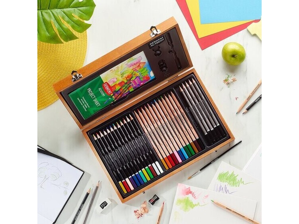 Dřevěná krabička Derwent Academy je perfektním dárkem, který inspiruje a rozvíjí kreslířské dovednosti začínajícího umělce.